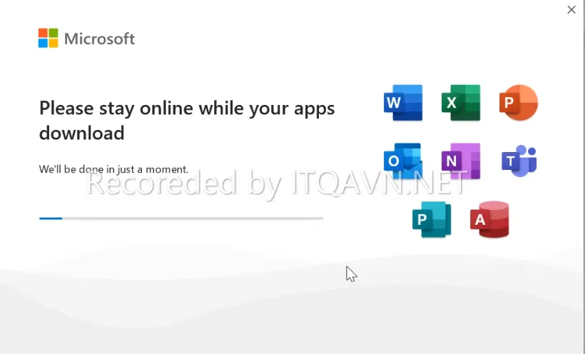 Bước 4. Bảng Please stay online while your apps download hiện ra, tại đây bạn chờ quá trình cài đặt Office 2021 trên Win 11, Win 10 diễn ra cho đến khi hoàn thành