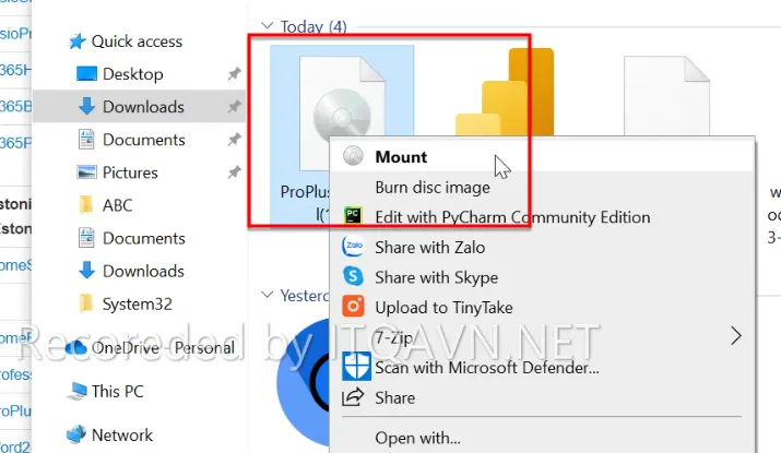 Bước 2. Bạn nhấn phải chuột lên file ProPlus2021Retail.img và chọn Mount